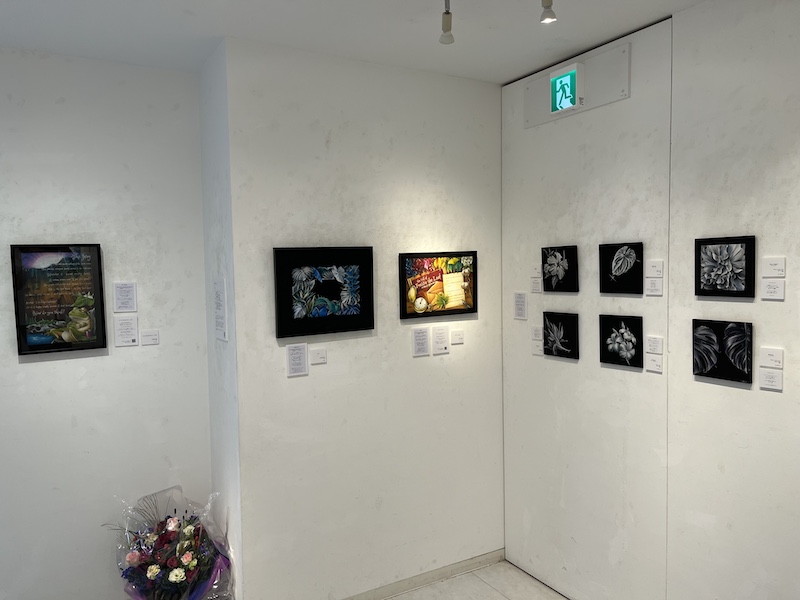 今回の展示では活動歴11年で書き溜めた作品を、それぞれが人生のターニングポイントであった記しとして、その時の心情や出来事などを振り返りつつ、未来への希望を込めた新作を含む18点の展示となります。